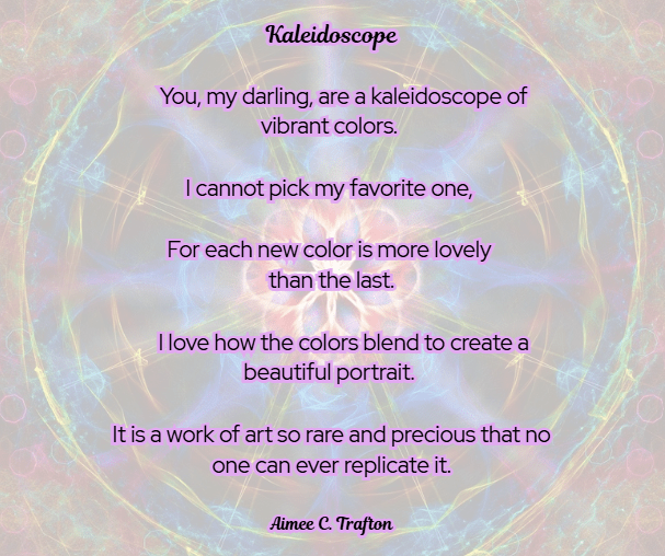 My mother, Carol Veysey, was a beautiful writer and especially loved writing poetry. I know she would have loved to have had her work published while she was alive, but never got the chance. So one of my favourite parts of being a writer myself is publishing her work whenever I get the chance.